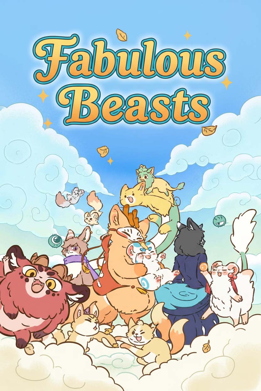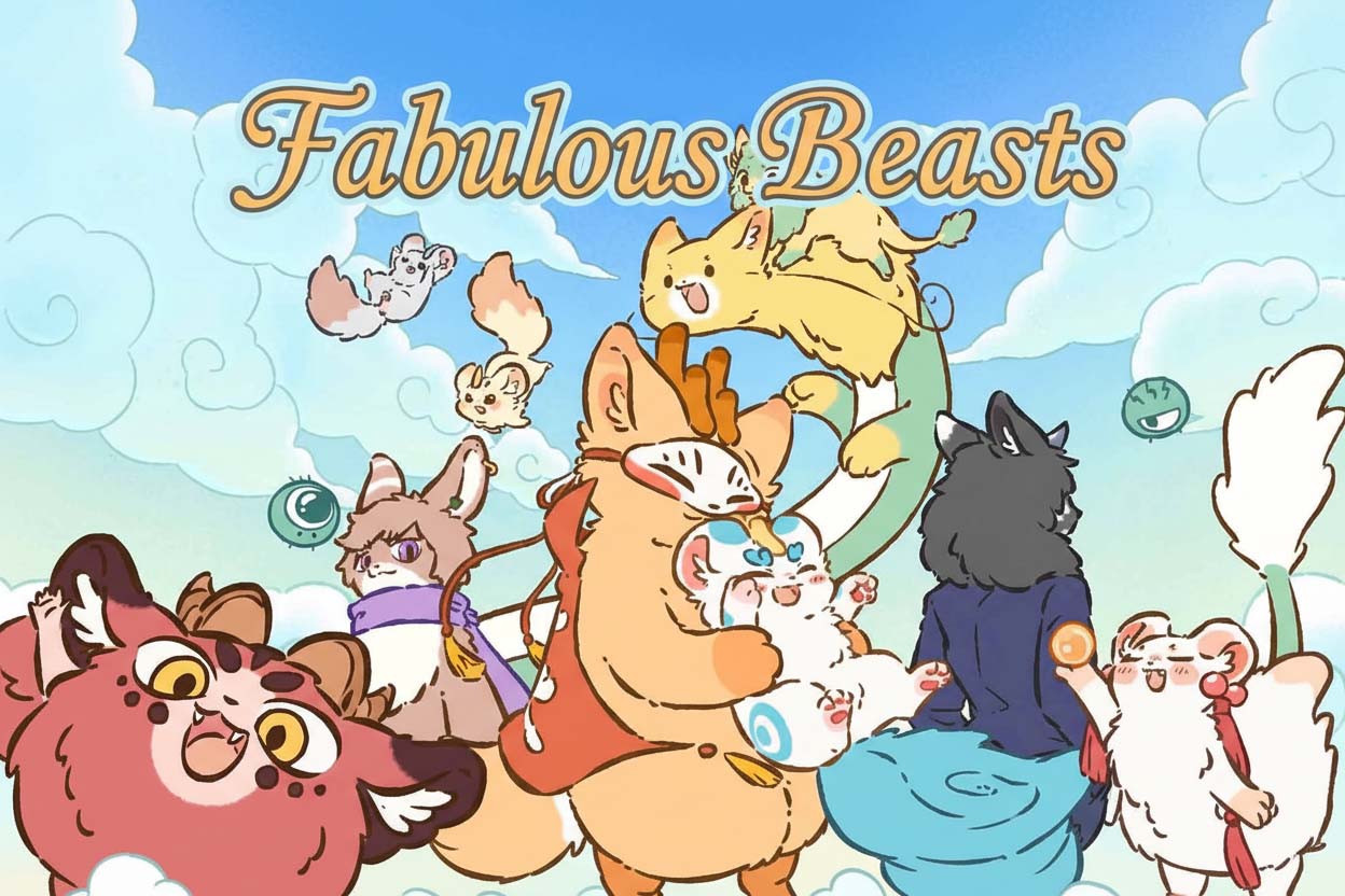 Official Fabulous Beasts characters in a colorful landscape with vibrant flowers and magical atmosphere.